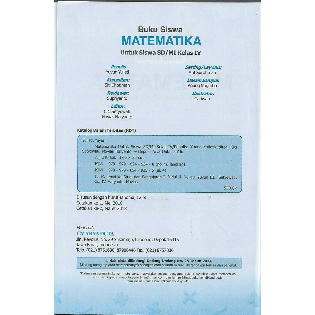 Pengiriman cepat pembayaran 100% aman. Download buku matematika kelas 4 sd mi kurikulum 2013 edisi revisi 2018 file buku matematika kelas 4 sd mi dalam format pdf dapat di download dengan mudah melalui google drive. Berdasarkan revisi tahun 2017 terhadap kurikulum 2013, mata pelajaran matematika dan pendidikan jasmani, olahraga, dan kesehatan (pjok) dipisahkan dari buku tematik terpadu. Kedua mapel tersebut dikeluarkan dari pembelajaran tematik terpadu di kelas atas sd/mi (kelas iv s.d vi). Mar 07, 2020 · download buku matematika kelas 4 sd kurikulum 2013 pdf yuyun yuliati. Buku kurikulum 2013 kelas 4 sd mi semester 1 edisi revisi tahun. Inilah pembahasan selengkapnya mengenai download buku matematika kelas 4 yuyun yuliati. Dec 30, 2020 · download buku matematika kelas 4 yuyun yuliati pdf. Sep 09, 2018 · buku matematika kelas 4 sd / buku matematika arya duta di tokopedia ∙ promo pengguna baru ∙ cicilan 0% ∙ kurir instan. Buku guru pendidikan jasmani olahraga dan kesehatan sd mi kls. Berikut ini buku matematika k13 kelas 4 revisi 2018 terbaru sebagai pegangan guru dan siswa untuk tahun pelajaran. Harga murah di lapak bliblibuku. Jual buku matematika kelas 4 sd mi di lapak taniastore.