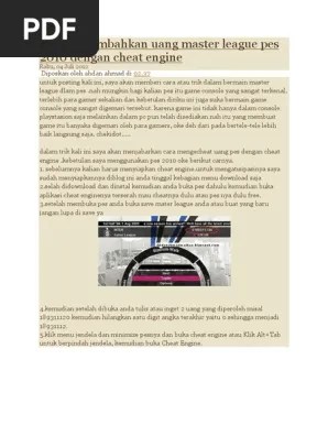 Cheat engine adalah peralatan pemindai memori. Pertama kali main master league di pes 2016 uang yang kita punya pastinya ga begitu banyak, dan ini akan menyusahkan kita nantinya. Dengan peralatan ini, anda bisa mengakses data yang tersimpan di memori komputer dan membuat perubahan pada data . Cara cheat pes 2017 dengan cheat engine. Bagi yang menyukai game tentang sepak bola pasti ke.